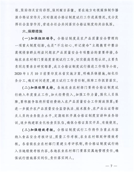 推行農(nóng)產(chǎn)品合格證既是落實生產(chǎn)經(jīng)營主體責任的迫切需要,也是構(gòu)建農(nóng)產(chǎn)品質(zhì)量*長效監(jiān)管機制的現(xiàn)實需求,更是落實《農(nóng)產(chǎn)品質(zhì)量*法》的必然選擇,對于促進農(nóng)業(yè)產(chǎn)業(yè)健康發(fā)展、確保農(nóng)產(chǎn)品消費*、保證人們的身體健康*具有重大的意義。